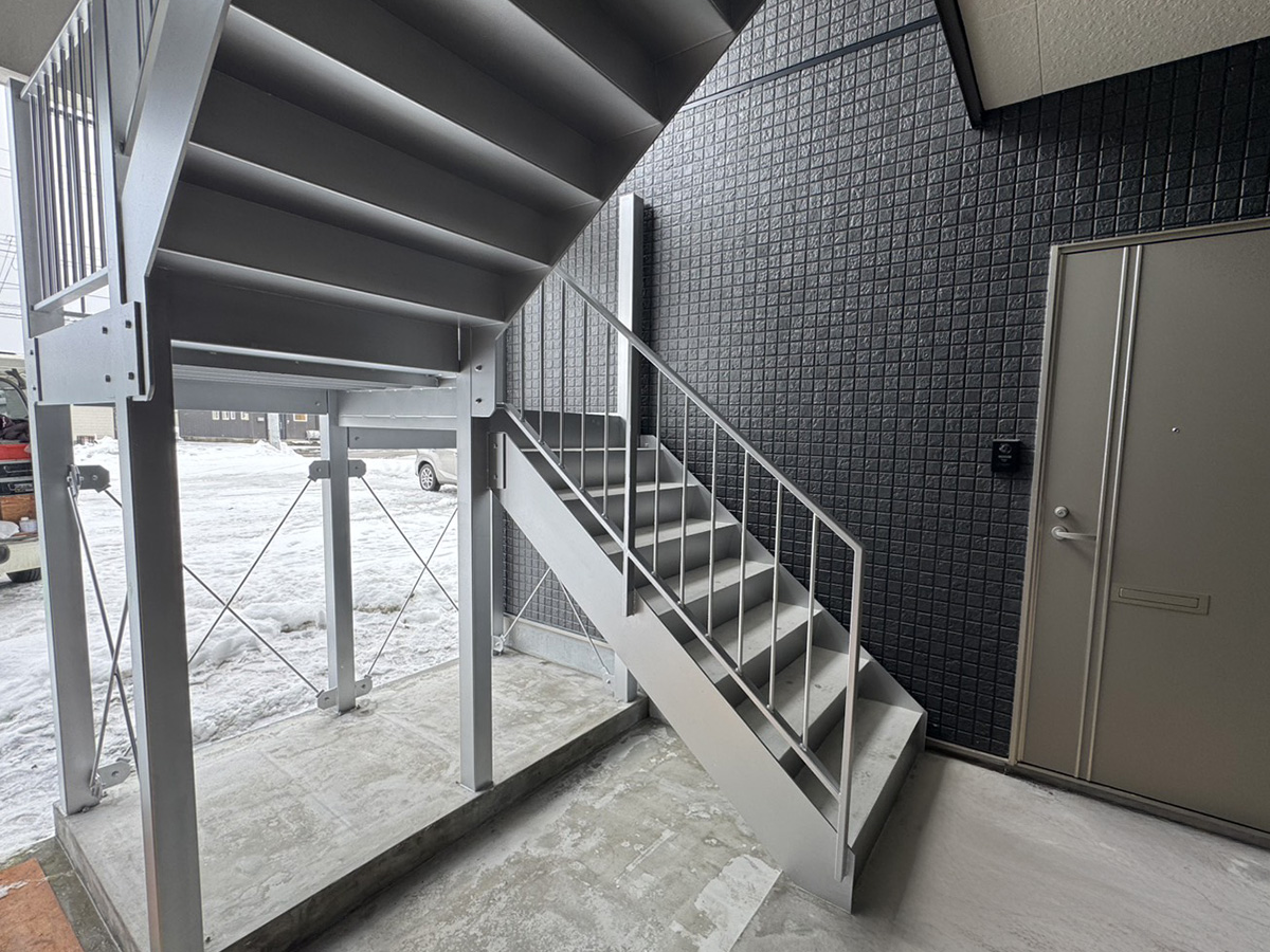 【施工の実例】アパート新築工事(階段新設) 2026 2/13 事例紹介 2026年2月13日 アパート新築工事で階段を新設いたしました。 函館近郊でアパートの鉄階段の設置を検討中の方は、ぜひ当社までお問い合わせください。実績は多数ございます。 他の製造実績はこちらで紹介しております。 あわせて読みたい 実績紹介 弊社ではこのような仕事をしていますので、実例をご紹介いたします。これからお仕事をご検討くださる方は、参考にしてみてください。 人の安全にかかわる仕事なので、ひ... 事例紹介 よかったらシェアしてね! URLをコピーしました! 【施工の実例】12ftコンテナ設置 関連記事 【施工の実例】12ftコンテナ設置 2026年1月5日 【施工の実例】雪止めフェンス施工 2025年11月6日 【施工の実例】手摺設置工事(函館市内・公共事業) 2025年11月4日 【施工の実例】青函トンネル内の踏み板 2025年8月29日 鉄階段の修理事例その2(函館市のアパート) 2025年7月8日2025年8月29日 【事例紹介】角型の薪ストーブ 2025年5月19日2025年8月29日 【事例紹介】はこだて自由市場様 裏玄関の階段手摺 2025年4月18日2025年11月4日 鉄階段の修理事例その2(函館市のアパート) 2025年3月13日2025年8月29日