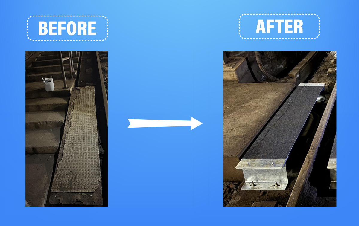 その中にあるレールを横断する時に必要な、つまずき転倒防止の踏み板が老朽化したため当社で施工いたしました。